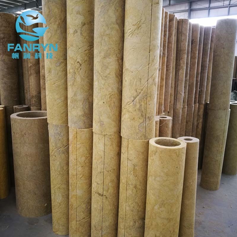 FANRYN Rock wool pipe is made from natural rocks such as basalt and limestone. The rocks are melted in a cupola at temperature of >1450 ℃, and the molten lava is fiberized by a spinner. The inorganic fibers are bonded together using a thermosetting resin to form the final product which is cut into suitable sizes for easy handling and installation.